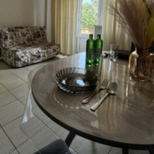 Кухонная зона оборудована всем необходимым: холодильник, плита, микроволновая печь, электрочайник, а также набор посуды и столовых приборов. Вы сможете приготовить себе завтрак, обед или ужин.