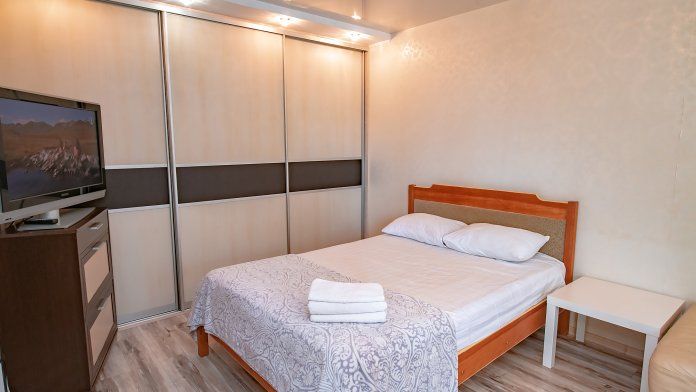 При длительном проживании предоставляем бесплатную смену белья и уборку квартиры.