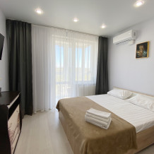 Квартира находится в новом жилом комплексе с развитой придомовой территорией. В пяти минутах находится сквер для прогулок, несколько оборудованных, новых детских площадок, два продуктовых магазина, торговый центр «На бульваре» и автобусная остановка. Рядом располагается авторынок «Зеленый угол». Дом находится рядом с объездной трассой, по которой за 30 минут без пробок можно доехать как до Русского острова, так и до бухт Щитовая и Шамора (пляж Лазурный).