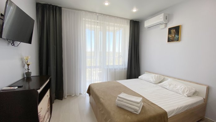 - 1 удобная двуспальная кровать и раскладной диван-кровать.