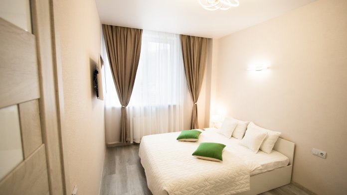 Двухкомнатная квартира со свежим ремонтом. Просторная, светлая квартира, укомплектована всей необходимой посудой и мебелью. Квартира находится в новом жилом комплексе с развитой придомовой территорией. Она идеально подойдет для семьи с детьми. В пяти минутах находится сквер для прогулок, несколько оборудованных, новых детских площадок, два продуктовых магазина, торговый центр «На бульваре» и автобусная остановка.