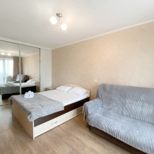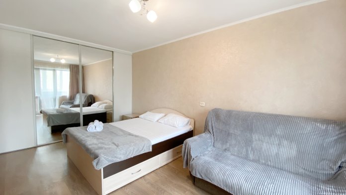 Квартира располагается в микрорайоне с развитой инфраструктурой. В пешей доступности 5-10 мин: 2 кинотеатра, ресторан Супра, различные кафе, парки, скверы. Торговые центры, супермаркеты Самбери, Реми. Тысячекоечная больница, клиника «Новое зрение» и Больница Рыбаков, медицинский центр Асклепий. Несколько автобусных остановок - что позволит без проблем добраться в любую точку города. Есть возможность припарковать машину при наличии свободных мест. Платная парковка находится в 5 мин пешком.