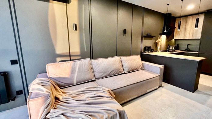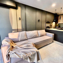 В квартире найдёте зал с панорамным остеклением, спальную комнату с King size кроватью и гардеробной комнатой. В прихожей размещён 5-секционный шкаф, который позволяет хранить даже самые крупногабаритные вещи. В ванной установлена стирально-сушильная машина, которая обеспечит вам чистое и сухое белье. Каждая розетка придумана до мелочей для удобства проживающих.