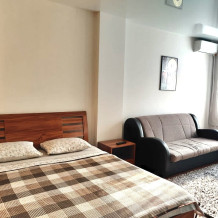 Уютная квартира-студия в доме бизнес-класса «Покровские Ворота». Рядом остановки общественного транспорта, торговый центр, в пешей доступности пляж на мысе Кунгасном, рынок морепродуктов.