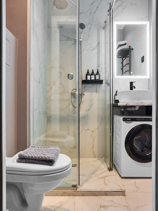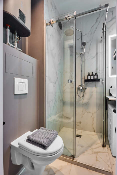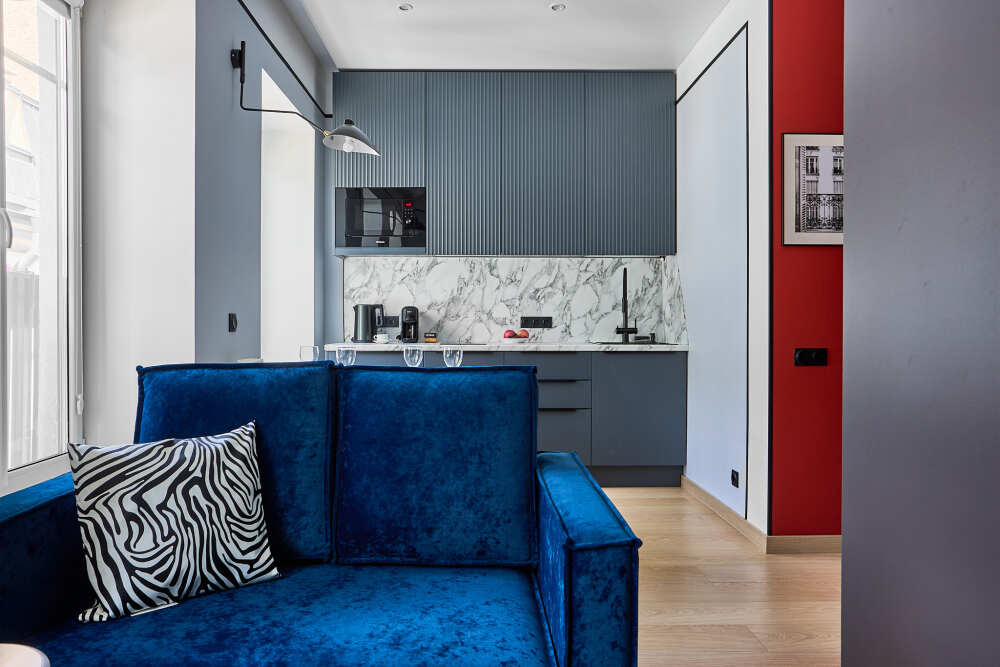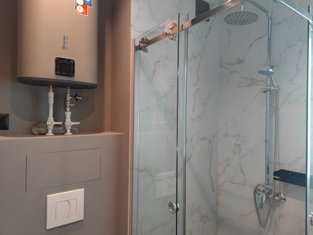 - Современное оборудование и бытовая техника - электрическая плита, холодильник, микроволновая печь, чайник, стиральная машина, кофеварка для капсульного и молотого кофе, утюг и гладильная доска, фен, сейф. На случай обычного для старых районов петербурга отключения горячей воды установлен бойлер. А для большего удобства в квартире вас ждёт умная колонка алиса