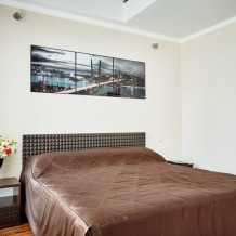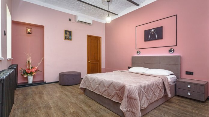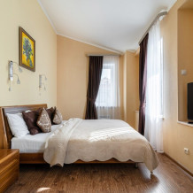 Две просторные уютные комнаты. Одна комната выполняет роль гостиной, она включает: журнальный столик и мягкие кресла, диван - кровать, который позволяет организовать дополнительное спальное место, ЖК телевизор, Wi-Fi ,бесплатно, холодильник, эл. чайник, чайные приборы. Балкон. В другой комнате обустроена уютная и большая спальня с широкой двуспальной кроватью, телефоном, туалетным столиком, кондиционером. В ванной комнате установлена современная душевая кабина, есть набор полотенец, халат, тапочки и туалетные принадлежности. Есть фен.