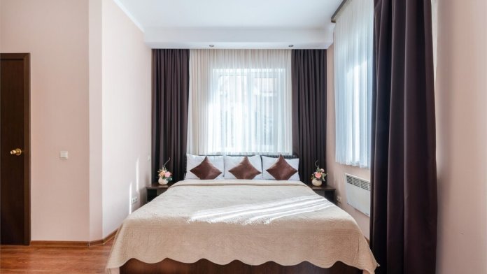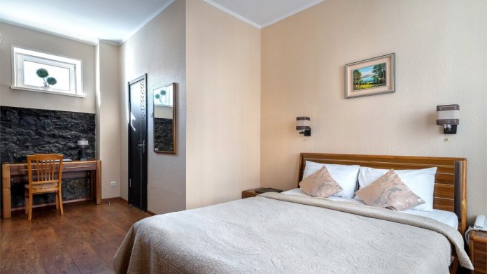 В номере Вы найдете все, что необходимо для полноценного отдыха: широкая двуспальная кровать размера King Size , письменный стол, кондиционер, ЖК телевизор, телефон, Wi-Fi бесплатно, холодильник, эл. чайник, чайные приборы.