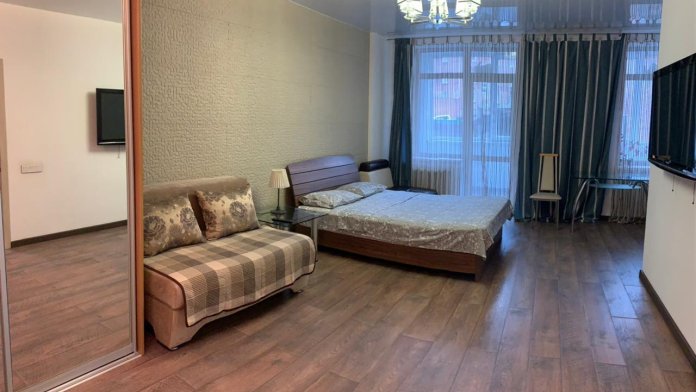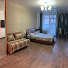 Современная уютная квартира-студия в центре города. В доме два продуктовых магазина, Рядом с домом есть большой супермаркет, удобная транспортная развязка в любой конец города, рынок морепродуктов, кафе, рестораны. До набережной - 10 минут пешком.