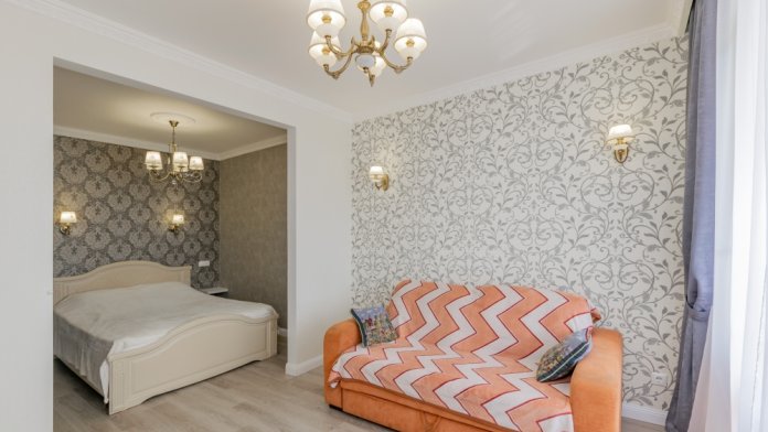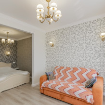 В квартире имеется все необходимое для временного и комфортного проживания. 2-спальная кровать, 2-спальный диван; 2 шкафа, комод, тумба, обеденный стол+стулья; сушилка и гладильная доска. Техника: кондиционер, ЖК телевизор, фен, утюг, эл. чайник, эл.панель, СВЧ печь, стиральная машина, холодильник, капсульная кофемашина. Также в наличии вся необходимая посуда для приготовления пищи (кастрюли, сковородки, тарелки и т. д.), столовые приборы; подушки и одеяла.