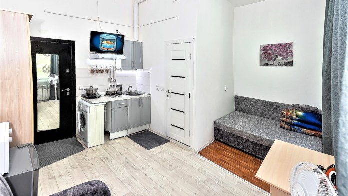 Уютная квартира-студия № 25 в Новосибирске. 2 минуты пешком до остановки «Гостиница Северная», 3 остановки метро «Парк Березовая роща», автобусная и троллейбусная остановка с маршрутами в любую точку города. Всего 3 остановки метро до ЖД вокзала «Новосибирск Главный». До центра города 10-15 минут.