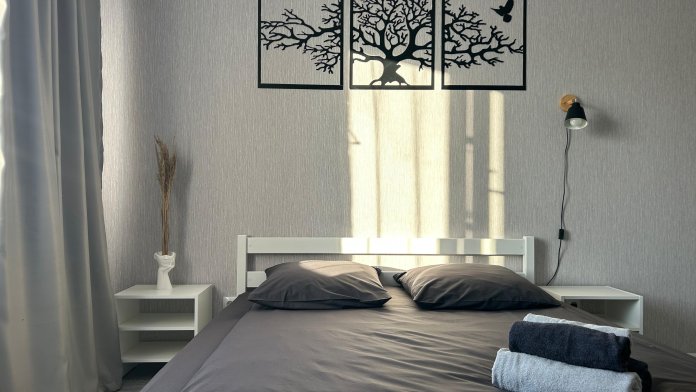 Квартира примет 2 гостей. Спальные места: комфортная двуспальная кровать.