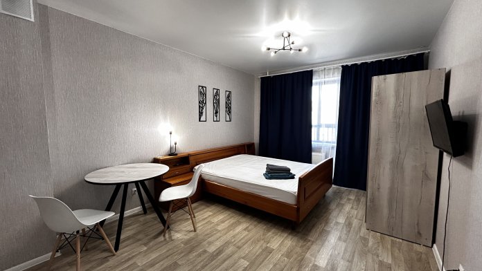 Квартира вмещает 2 гостя. Спальные места: комфортная двуспальная кровать. В квартире современный ремонт. Чистая, уютная. Есть все необходимое для комфортного проживания: высокоскоростной Wi-Fi интернет, техника: телевизор, фен, холодильник, микроволновая печь, эл.плита, эл.чайник, утюг, гладильная доска. Kухня оборудoвaна всем необxoдимым. Прeдoстaвляем поcтельнoe бельe и полотенца.
