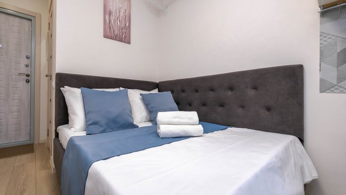 Студия вмещает 2 гостя. Спальные места: двуспальная кровать.