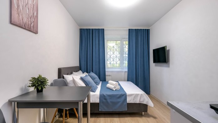 Студия вмещает 2 гостя. Спальные места: двуспальная кровать.