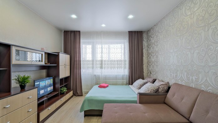 Квартира вмещает 4 гостя. Спальные места: комфортная двуспальная кровать и диван-кровать. В квартире современный ремонт. Чистая, уютная. Есть все необходимое для комфортного проживания: высокоскоростной Wi-Fi интернет, техника: телевизор, фен, холодильник, микроволновая печь, эл.плита, эл.чайник, утюг, гладильная доска. Kухня оборудoвaна всем необxoдимым.