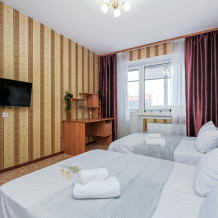 При запросе гостя предоставляем гигиенический набор (зубная щетка, гель для душа, шампунь, тапочки), цена -120 рублей