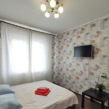 Квартира вмещает 6 гостей. Спальные места: две двуспальные кровати и диван-кровать. В квартире есть все необходимое для комфортного проживания: высокоскоростной Wi-Fi интернет, техника: телевизор, фен, холодильник, микроволновая печь, эл.плита, эл.чайник, утюг, гладильная доска. Kухня оборудoвaна всем необxoдимым.