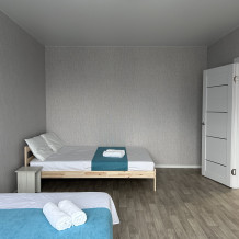 Квартира вмещает 4 гостя. Спальные места: две двуспальные кровати. В квартире современный ремонт. Чистая, уютная. Есть все необходимое для комфортного проживания: высокоскоростной Wi-Fi интернет, техника: телевизор, фен, холодильник, микроволновая печь, эл.плита, эл.чайник, утюг, гладильная доска. Kухня оборудoвaна всем необxoдимым.