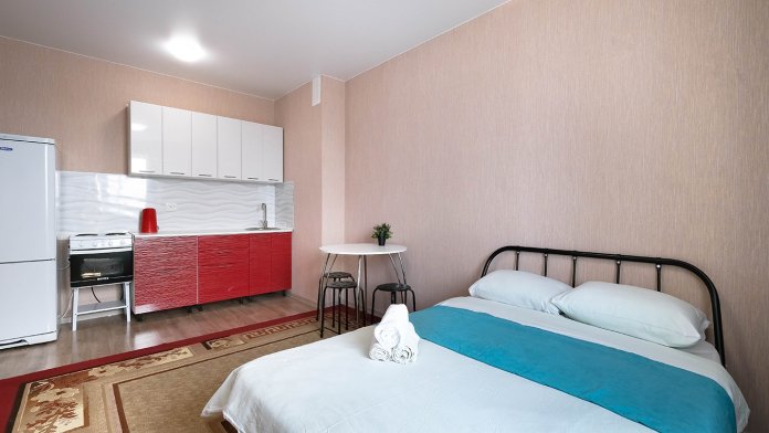 Квартира вмещает 2 гостя. Спальные места: двуспальная кровать. В квартире современный ремонт. Чистая, уютная. Есть все необходимое для комфортного проживания: высокоскоростной Wi-Fi интернет, техника: телевизор, фен, холодильник, микроволновая печь, эл.плита, эл.чайник, утюг, гладильная доска. Kухня оборудoвaна всем необxoдимым.