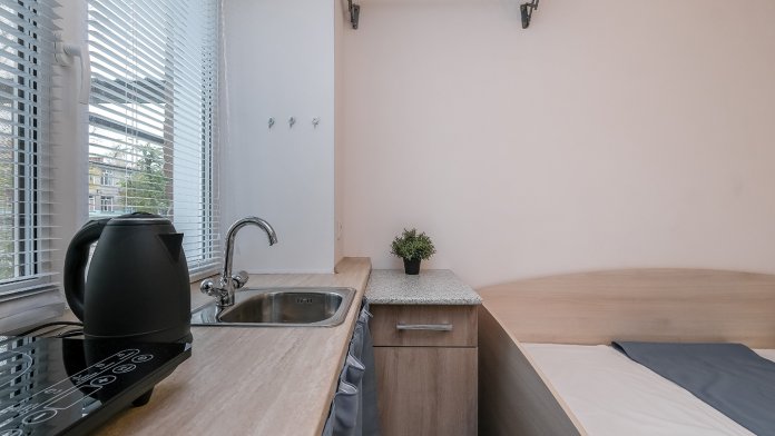 Квартира вмещает 2 гостя. Комфортная двуспальная кровать. В квартире современный ремонт. Чисто, уютно. Есть все необходимое для комфортного проживания: высокоскоростной Wi-Fi интернет, техника: телевизор, фен, холодильник, микроволновая печь, эл.плита, эл.чайник, утюг, гладильная доска. Kухня оборудoвaна всем необxoдимым.