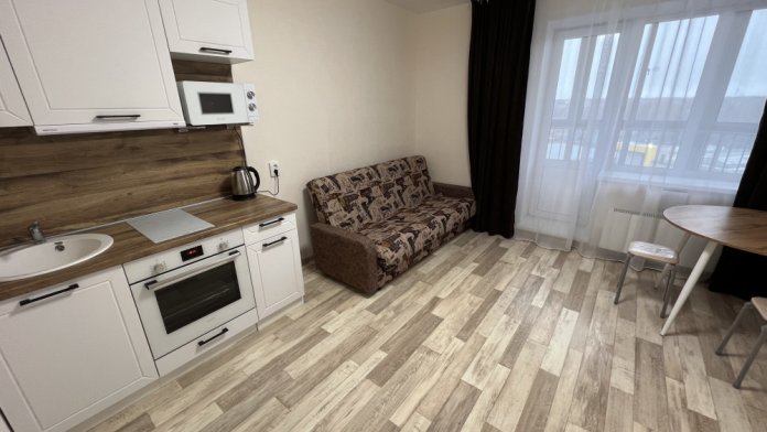 В квартире установлена новая современная мебель и техника, в прихожей большой вместительный шкаф, в ванной новая стиральная машина. Установлен современный кухонный гарнитур с новой встраиваемой техникой. Есть все для комфортного проживания (включая полотенца и постельное белье), чайник, холодильник, духовой шкаф, варочная панель, вытяжка, микроволновка, диван, стол, посуда, все новое.