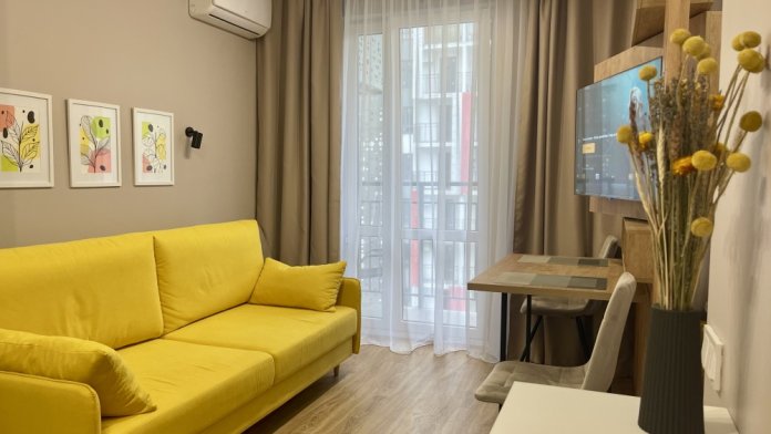 Это не просто апартаменты. Это пространство, где всё создано для Вас: и уют, и свет, и тишина, и даже поворотный телевизор, который удобно смотреть с любого места.