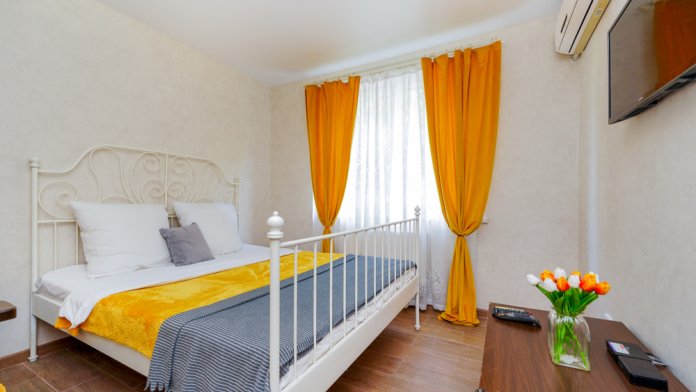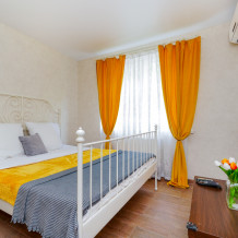 - Двуспальная кровать с ортопедическим матрасом и двуспальный диван.