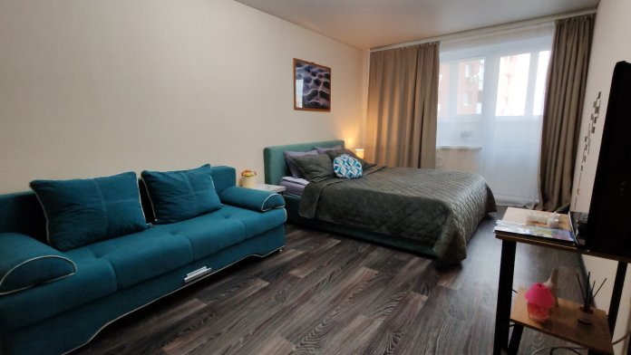 Уютная 1-комнатная квартира ждёт своих гостей в новом районе города с развитой инфраструктурой недалеко от горнолыжного комплекса СОК.