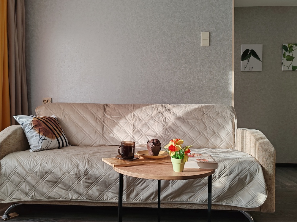 В квартире чисто и уютно. Курить разрешается только на балконе.