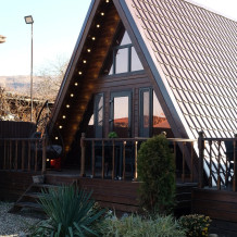 Домик А-фрейм рассчитан на 4 человека. В домиках есть кондиционер.