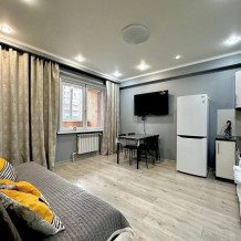Для гостей: интерактивное телевидение, Wi-Fi, постельное бельё – 100% хлопок, полотенца, посуда, фен, утюг, гладильная доска, сушилка, микроволновая печь, плита, стиральная машина, холодильник, одноразовые гигиенические наборы.