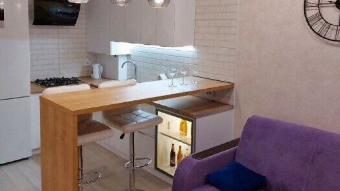 - полностью оборудованная кухня с холодильником, чайником, микроволновой печью и необходимой посудой;