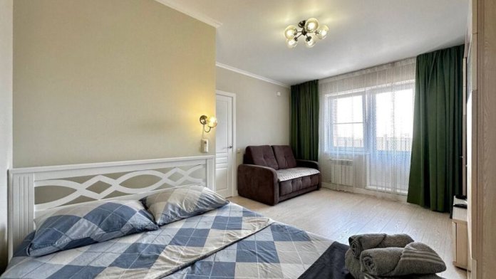 Для гостей: интерактивное телевидение, Wi-Fi, постельное бельё – 100% хлопок, полотенца, посуда, фен, утюг, гладильная доска, сушилка, микроволновая печь, плита, стиральная машина, холодильник, одноразовые гигиенические наборы.