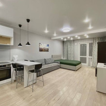 Для гостей: интерактивное телевидение, Wi-Fi, постельное бельё – 100% хлопок, полотенца, посуда, фен, утюг, гладильная доска, сушилка, микроволновая печь, плита, стиральная машина, холодильник, одноразовые гигиенические наборы.
