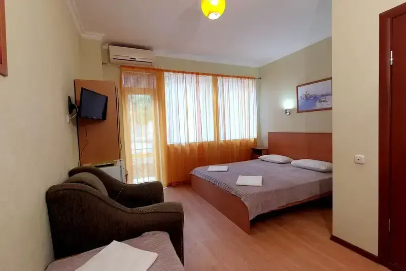 В нашем гостевом доме Вас ожидают комфортабельные комнаты площадью от 14 кв. м с балконами и всеми необходимыми удобствами. В каждой комнате есть цифровое телевидение и доступ в интернет.