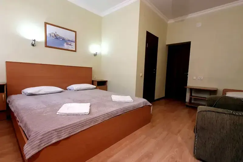 В номере: 2 спальная кровать и 1-спальная кровать или кресло-кровать.