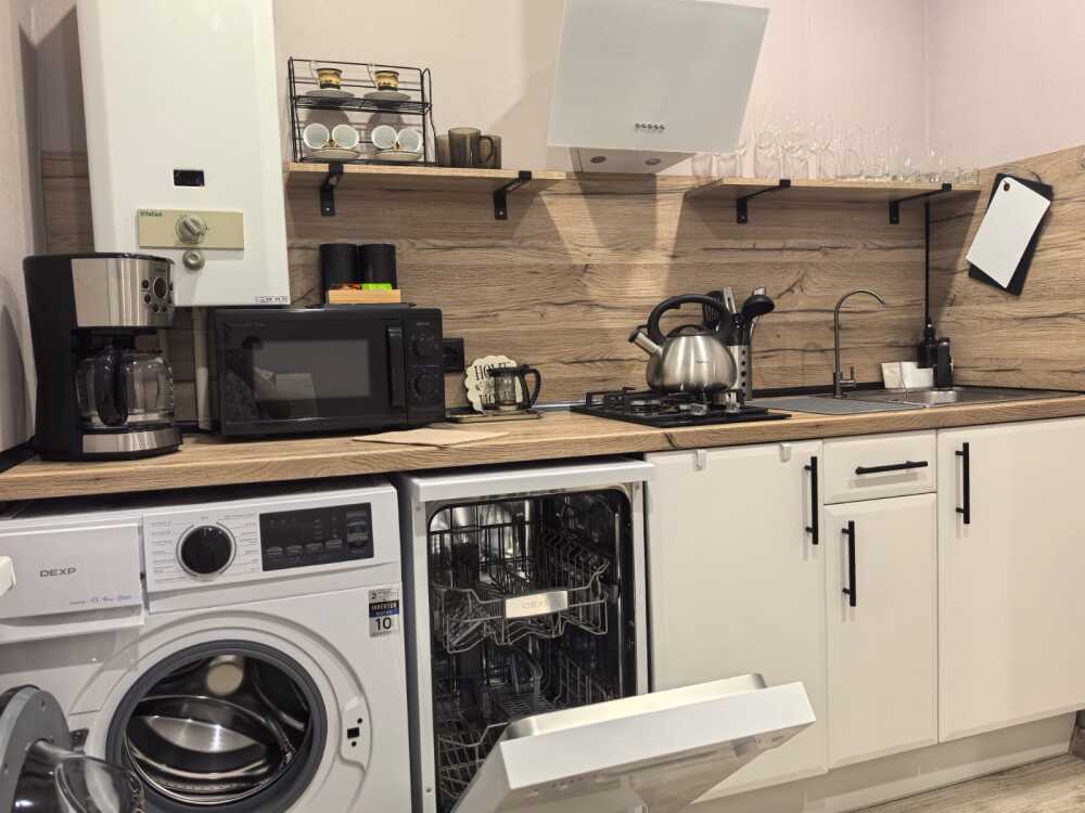 - плита, посудомоечная машина, микроволновка, чайник, кофемашина, холодильник