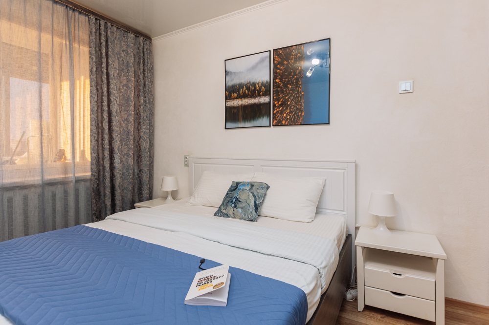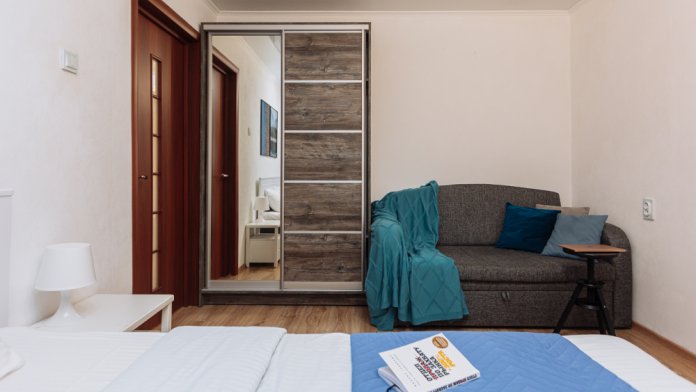 В квартире есть отдельная спальня и отдельная кухня, у нас с комфортом можно разместиться 3 взрослым или семье с ребенком. В комнате Вы сможете отдохнуть на кровати с комфортным матрасом, а также расположиться на удобном диване за просмотром любимых фильмов.