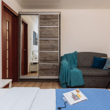 - При двухместном размещении и оплате по тарифу для 2 гостей застилается только кровать. Дополнительное постельное бельё для дивана предоставляется по запросу за дополнительную плату (необходимо сообщать заранее).