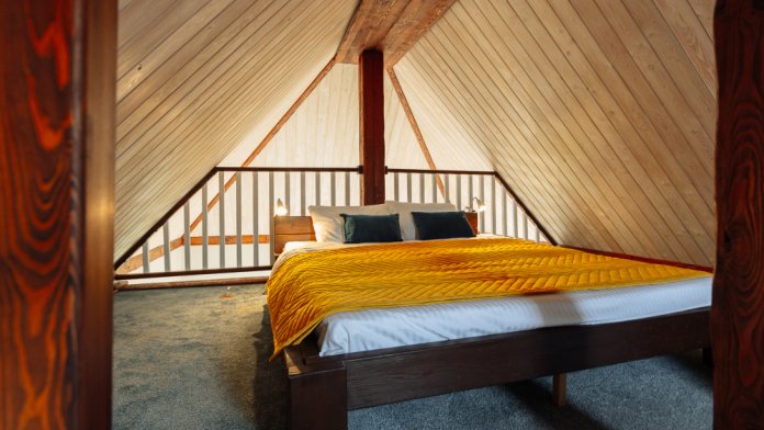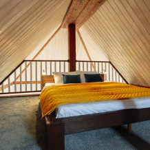 В отдельной спальне на втором этаже Вас ждет большая удобная кровать и односпальная кровать, в зоне отдыха Вы сможете с отдохнуть на большом раскладном диване с комфортным матрасом за просмотром любимых фильмов.