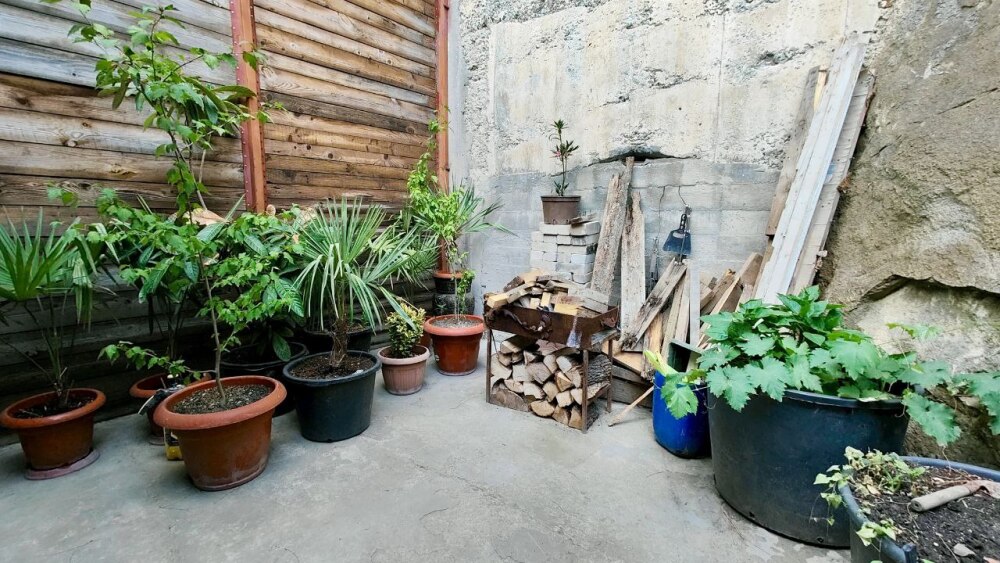 Во дворе площадью 30 кв.м. есть обеденная зона, мангал и место для отдыха на свежем воздухе. Также здесь много экзотических растений, которые с любовью выращивали хозяева.