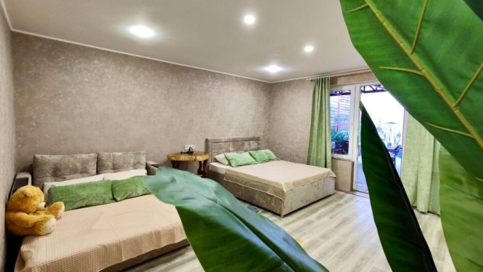 Квартира с кухней полностью меблирована и оснащена всей необходимой техникой для краткосрочного и долгосрочного проживания: стиральная машинка, большой холодильник, так же большой ЖК телевизор, кондиционер, микроволновка. Она подойдёт для проживания от одного до четырёх гостей. При необходимости, за дополнительную плату, возможно размещение и пятого человека.