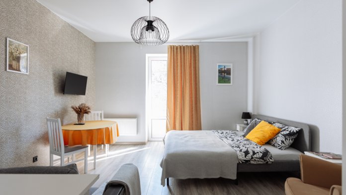 В квартире полноценная спальня и отдельная кухня, у нас с комфортом можно разместиться 4 взрослым или семье с 2 детьми.