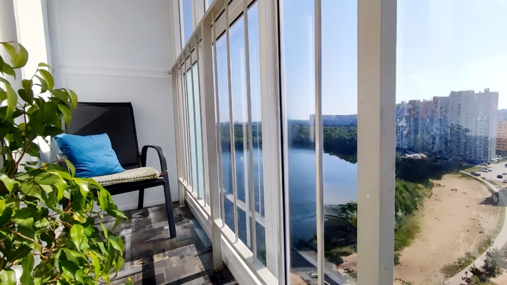 Уютная квартира на 14 этаже, с панорамным балконом и великолепным видом на город, озеро и пляж.