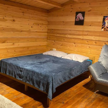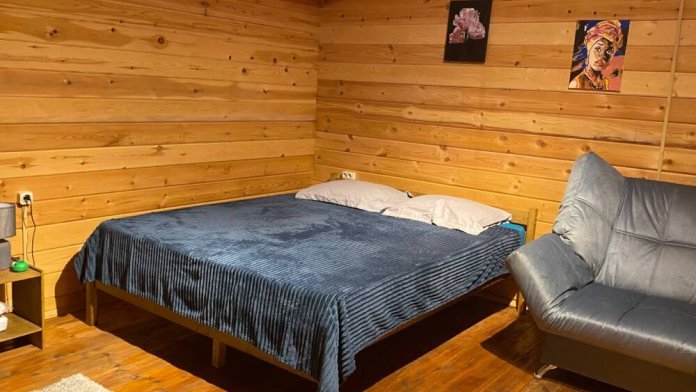 На закрытом дворе находится 2 домика вместимостью до 4 человек. Они оснащены 2-спальной кроватью, диван-кроватью, телевизором, кухней и санузлом. В домиках есть Wi-FI. По запросу предоставляется детская кроватка.