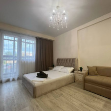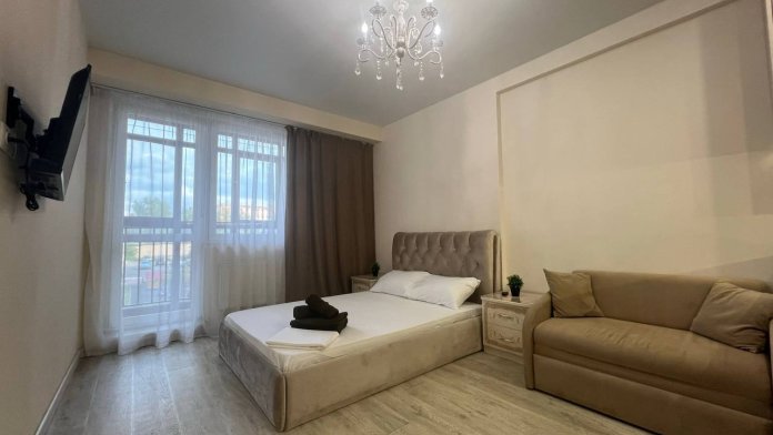 В квартире есть все необходимое: двухспальная кровать, диван, кухонный гарнитур, плита, микроволновка, чайник, стиральная машина, телевизор, шкаф, обеденная зона, гладильные принадлежности, Wi-Fi. Предоставляются туалетно-косметические принадлежности.