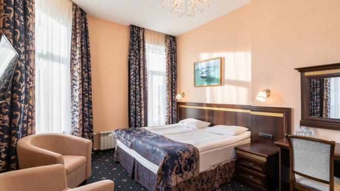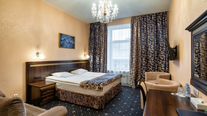 Отель предлагает 38 номеров категорий: Стандарт, Улучшенный и Люкс. Номера выполнены в классическом стиле, оснащены комфортной мебелью, современной сантехникой, а ортопедические кровати создадут комфорт и уют после насыщенного дня. Из окон отеля открывается вид на главную улицу города - Невский проспект.