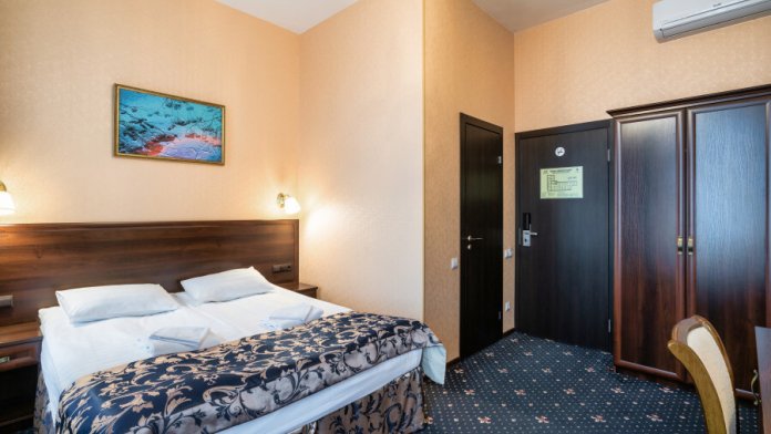 Номер оборудован уютной кроватью, тумбочкой, мягким креслом, ТВ, кондиционером, телефоном, сейфом, собственным санузлом. Гостям предоставляются мыльные принадлежности, комплект полотенец, тапочки.