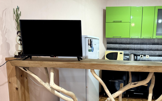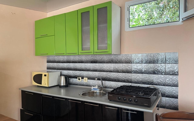 До всей необходимой инфраструктуры можно добраться пешком за 10-20 минут. Дом расположен в пос. Алахадзы, в 2,8 км от моря.