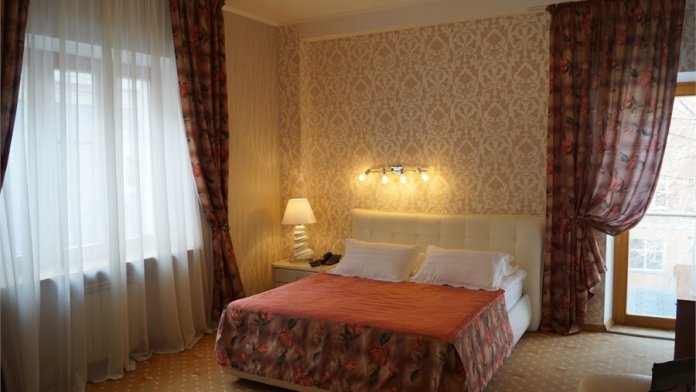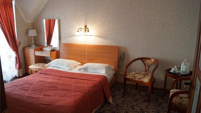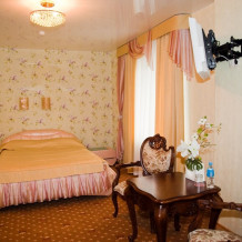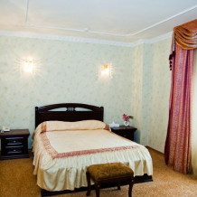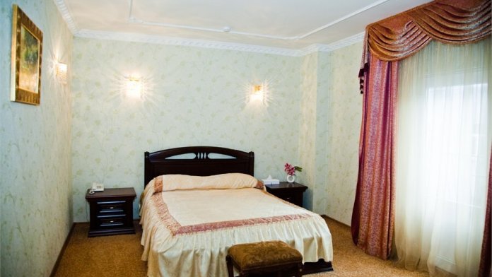 К услугам гостей гостиница предлагает комфортабельные одноместные и двухместные номера и номера повышенной комфортности классов люкс и полу-люкс, соответствующие европейским стандартам качества. В номерах гостиницы есть кондиционеры, индивидуальные сейфы, спутниковое телевидение, фен, мини-бар.